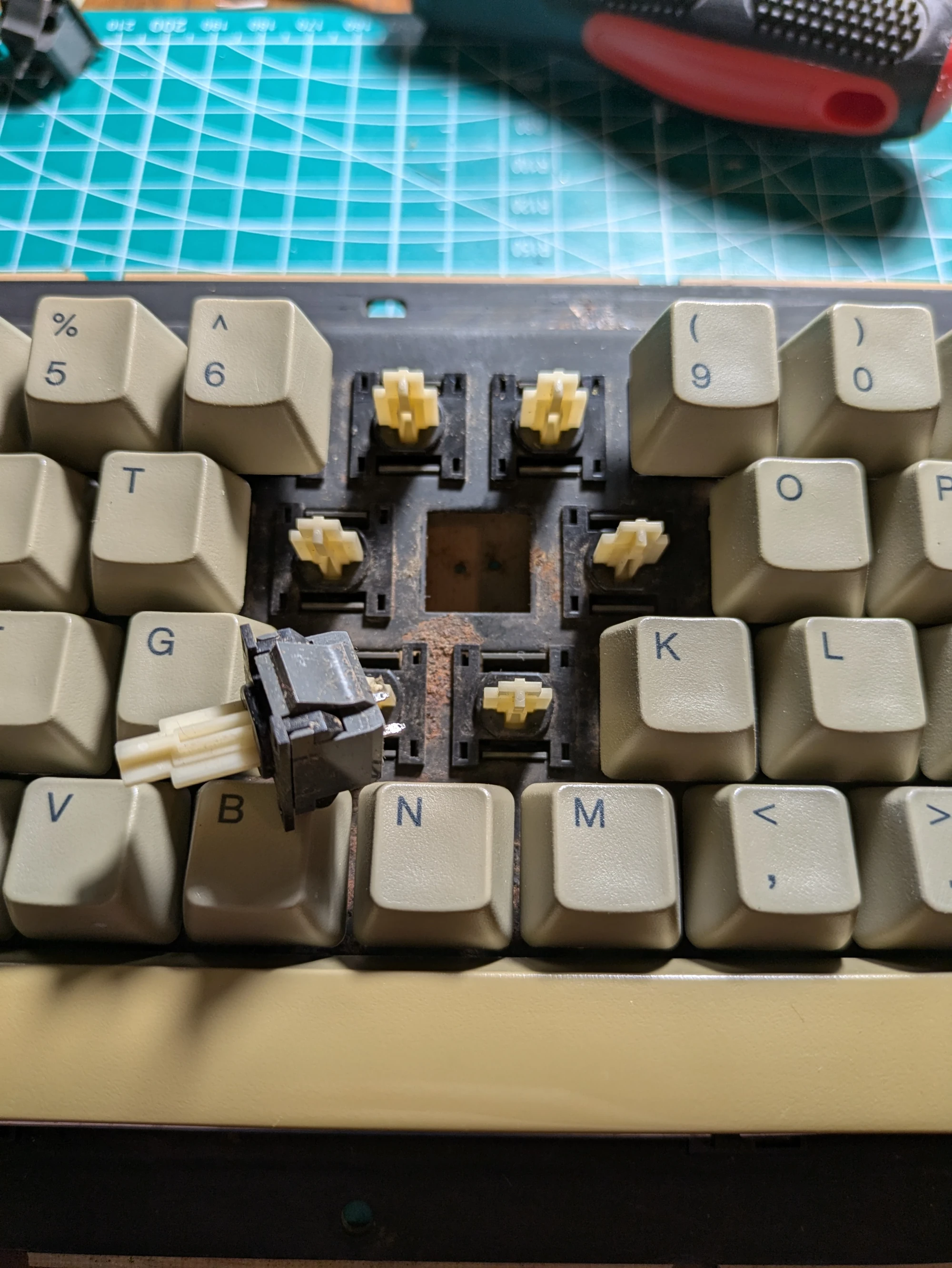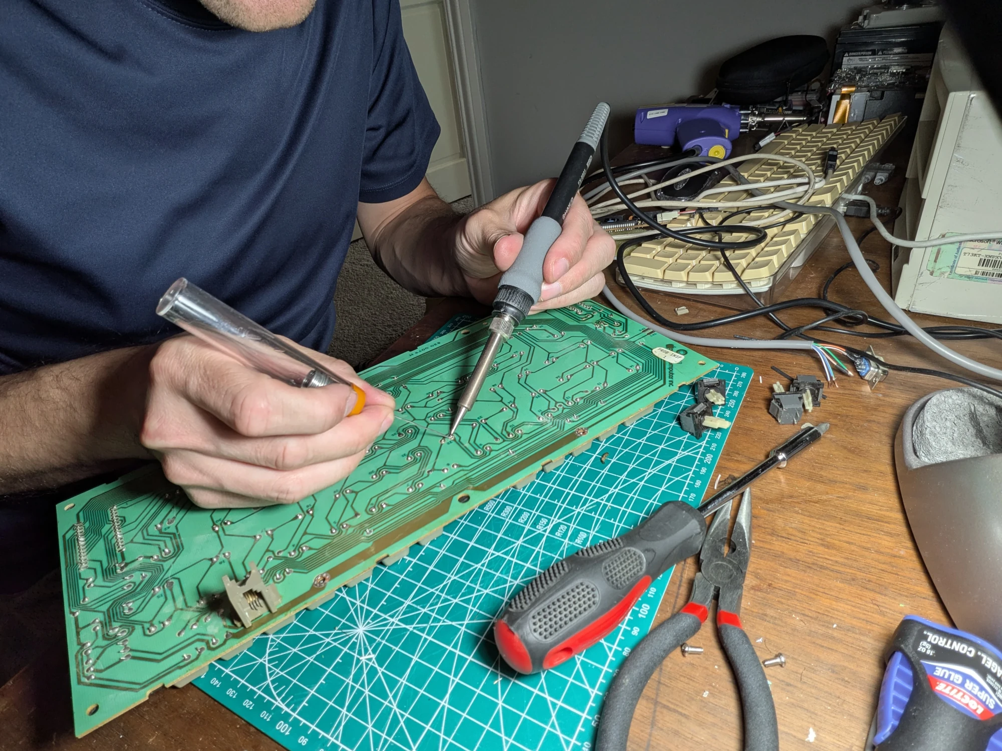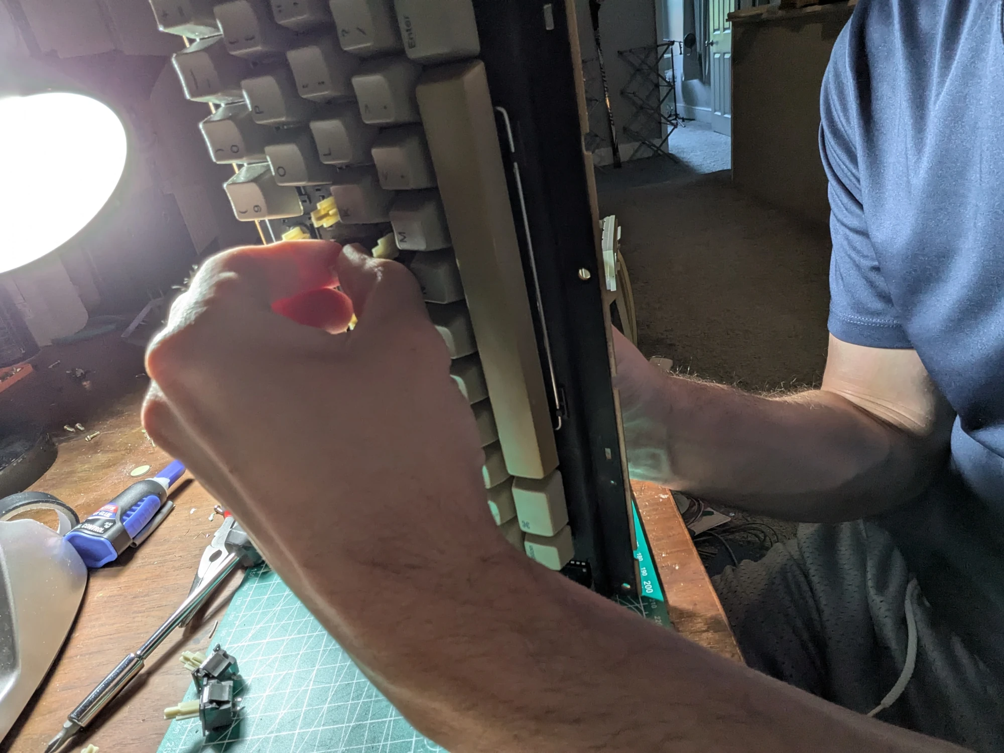 Finally, I soldered the pins to the board, replace the pulled keycaps, and screwed the case back together.