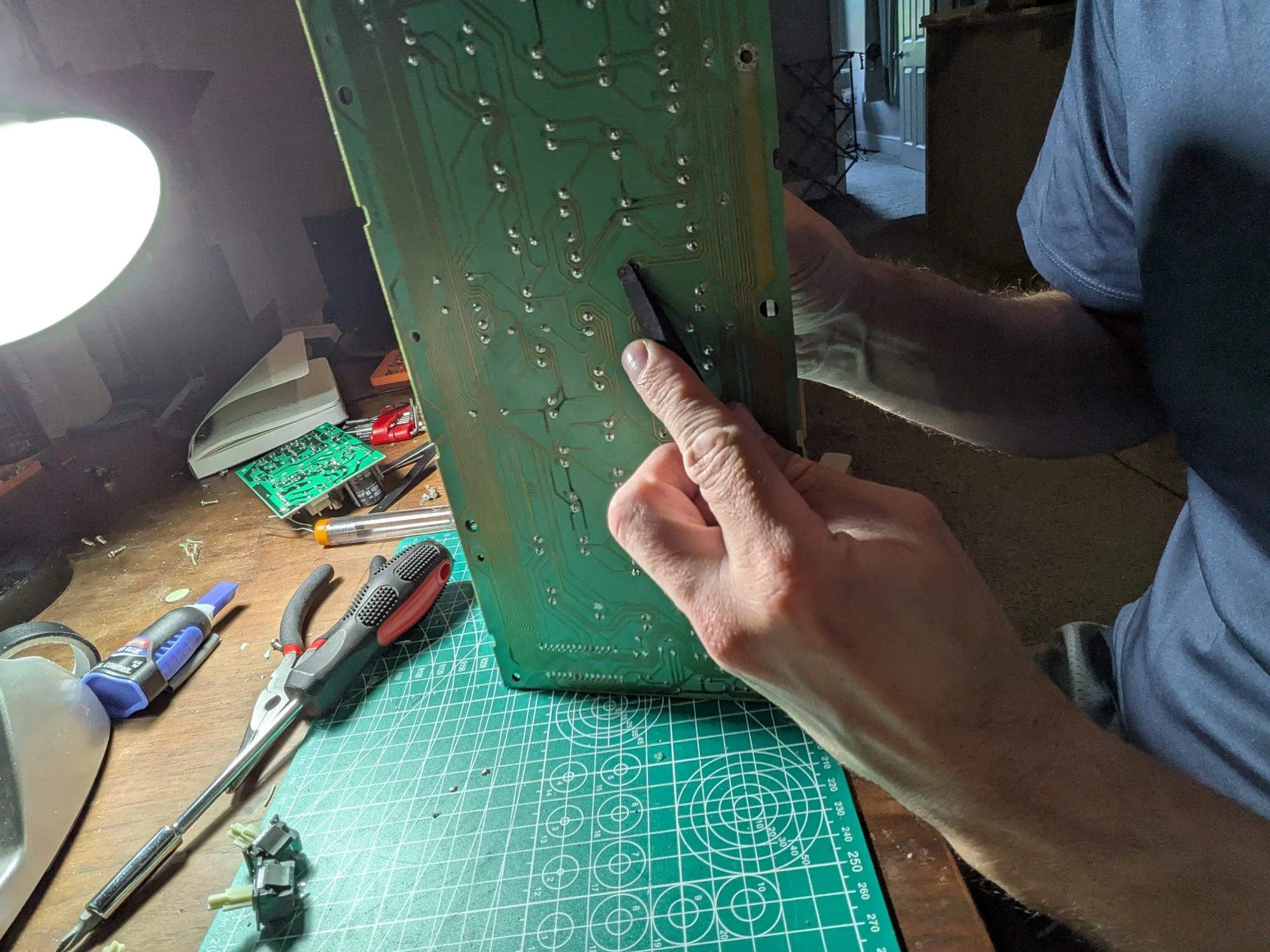 Next up, after desoldering the switch, it was time to pull it out. using my right hand, I squeezed the tabs on the top of the switch...