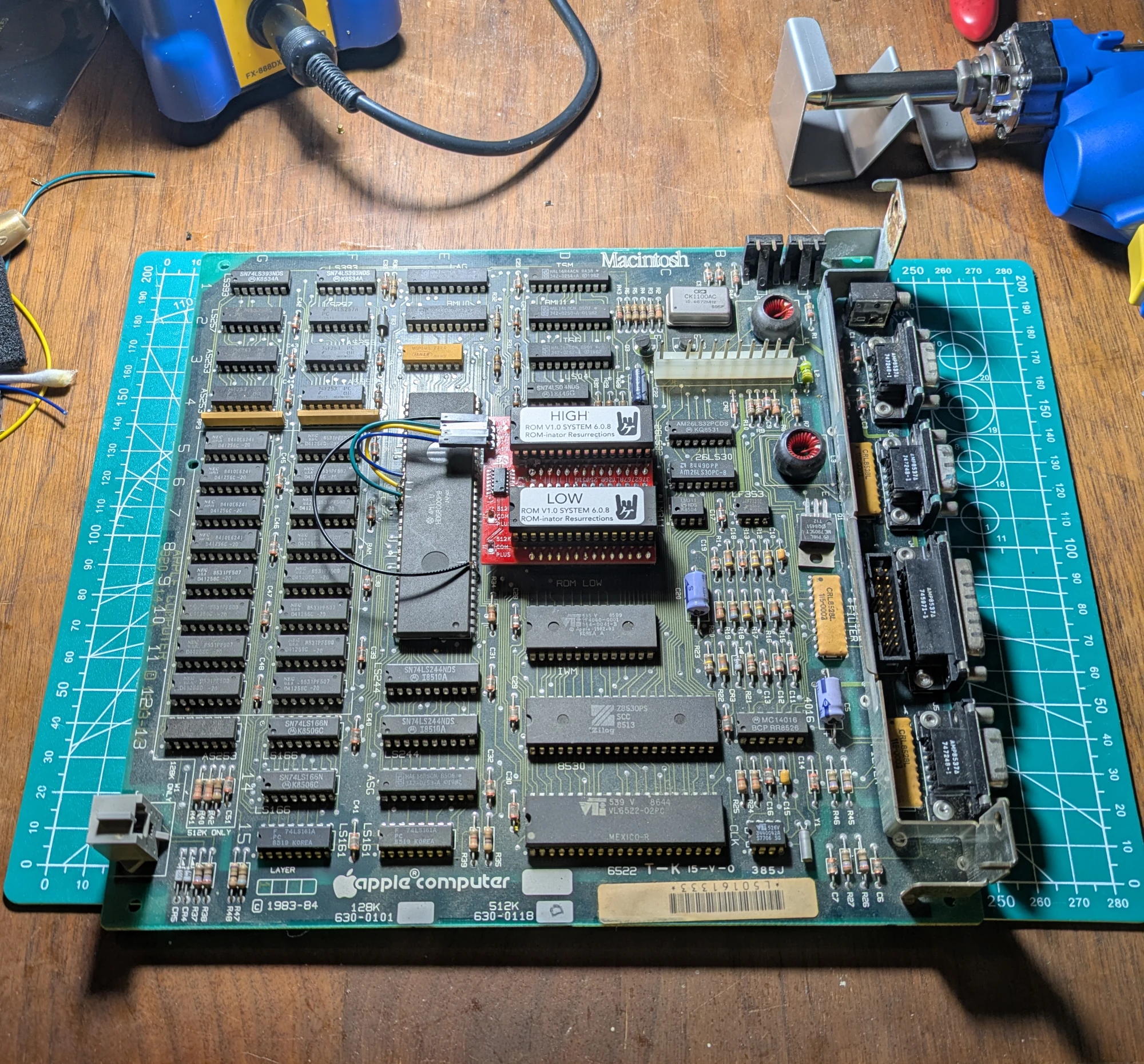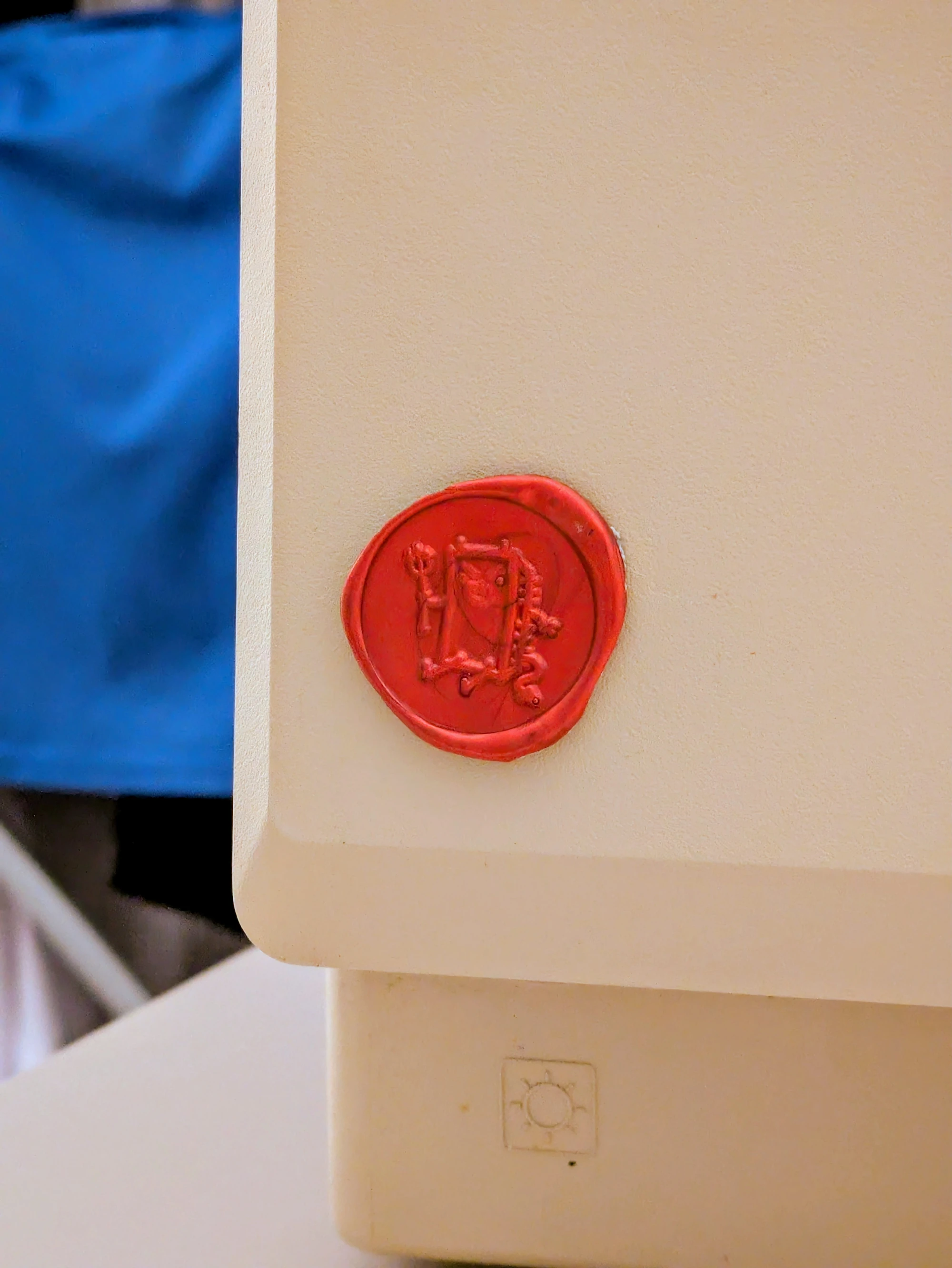 The chip came with a hand-written note in an envelope closed with a wax seal with the Kero's Devil Mac logo. I thought that was really neat, and since the 512k's Apple badge was scratched up, I affixed the wax seal over top of it.