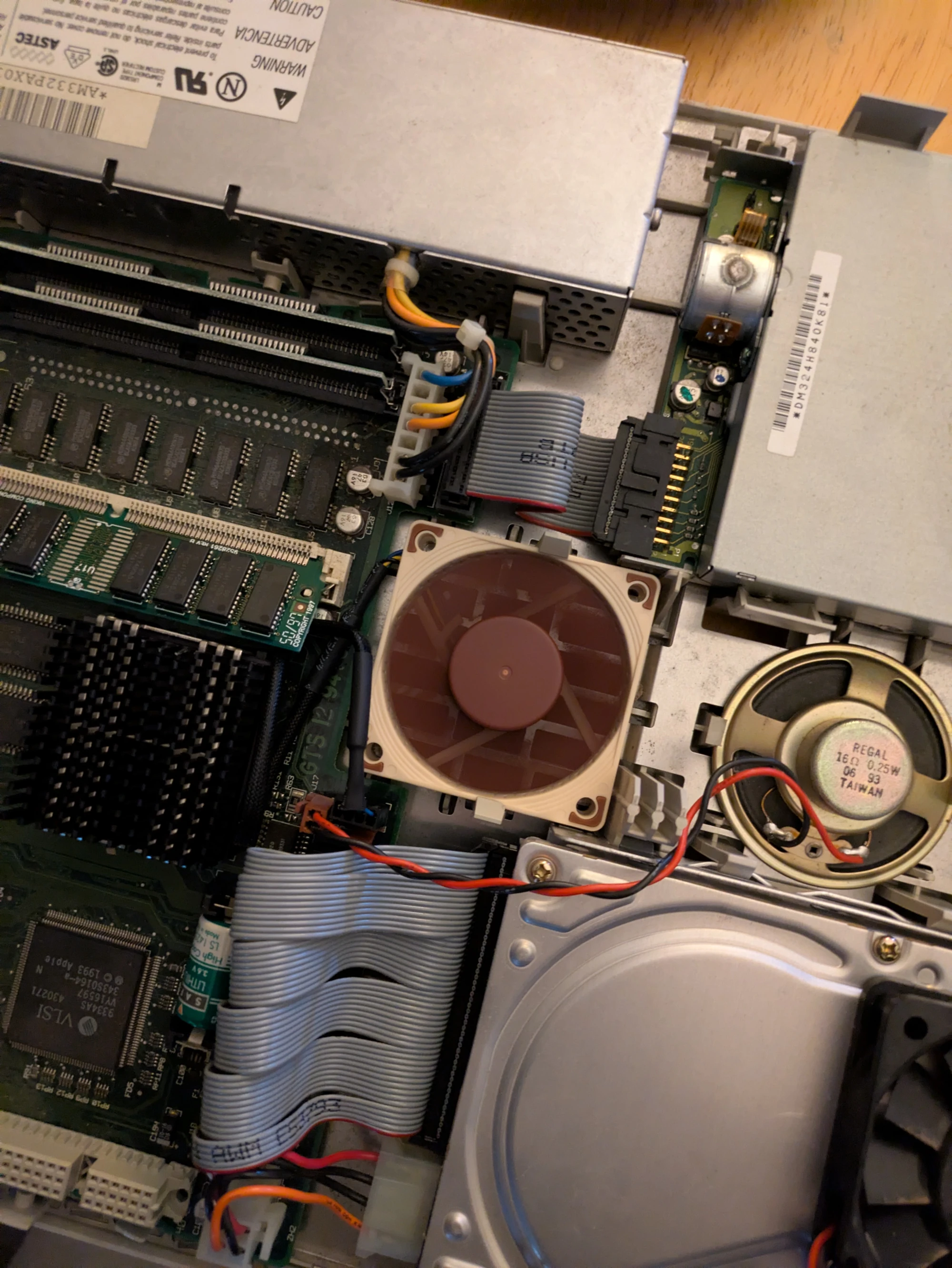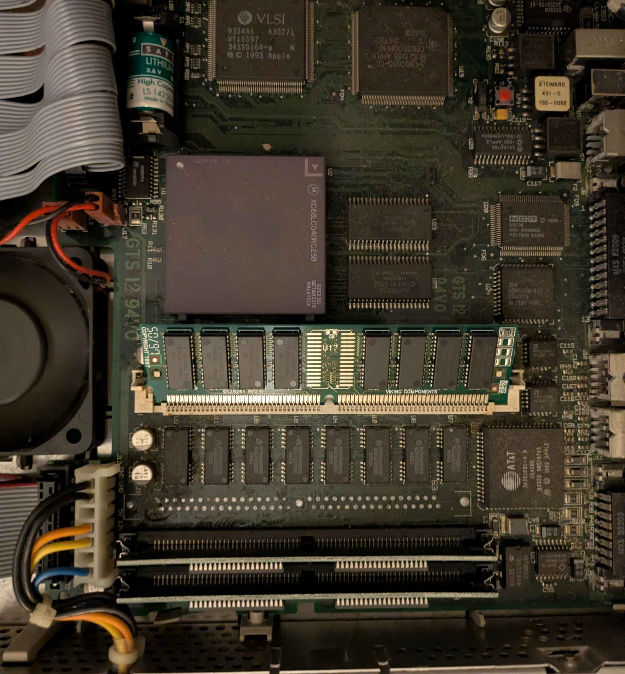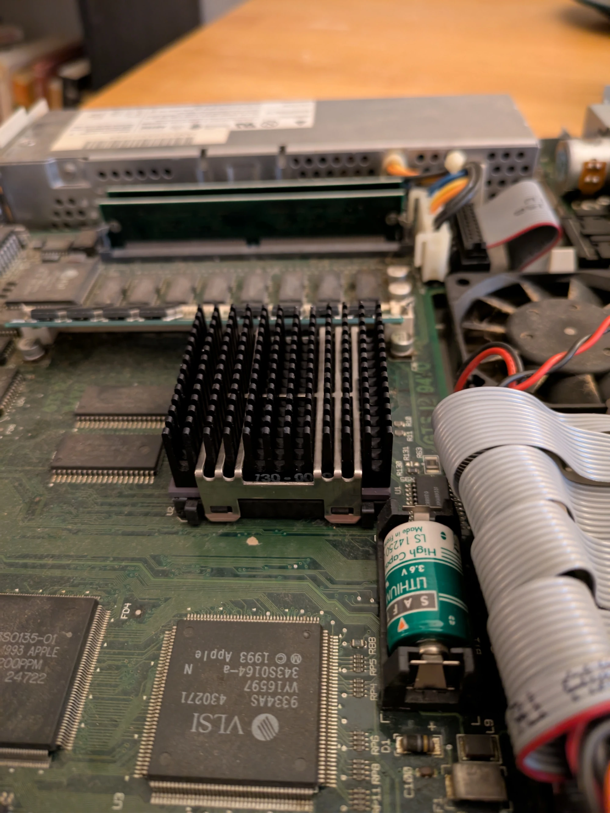 The CPU and heatsink from the Centris installed in the Performa, with some fresh Corsair TM30 thermal paste. With the heatsink, it fits with just a small amount of room to spare.
